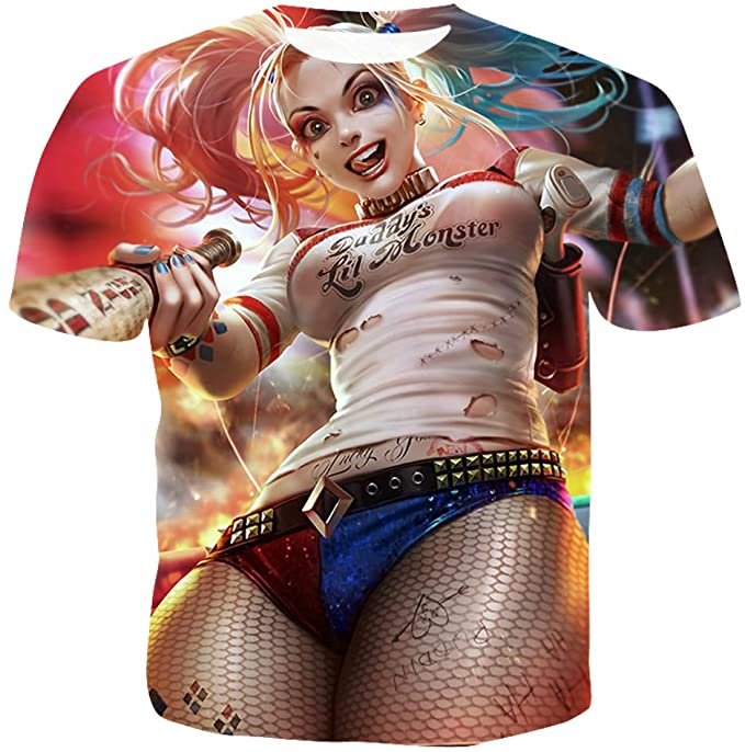 The Joker girl appears on screen in several looks. Visit the product page to collect several other 3D designs of Harley Quinn and Joker. These apparel are soft and comfortable; available in various sizes.