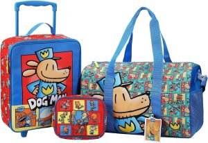 Looking for the perfect rolling luggage for kids? Well, this lightweight, fun design is great for travel! In addition, it even fits Dog Man merchandise easily.