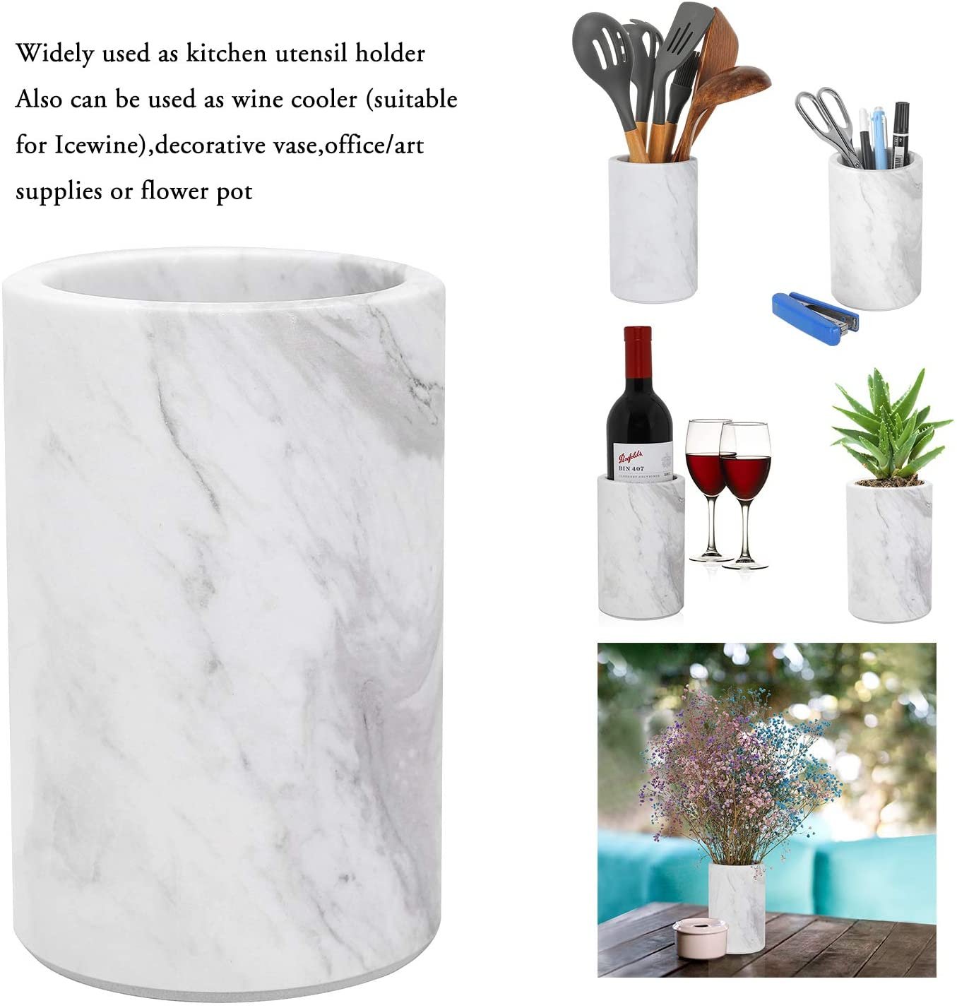 Kitchen Utensil Holder for Countertop, Natural Marble Wine Chiller Bucket/Utensil Crock/Cooking Utensil Holder