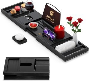 An expandable bathtub tray is an amazing addition to any bathroom. After a long day, it helps you relax like a mini spa at home. You can place a lovely book or a cup of tea on it while enjoying your bath. It also works well with Bathroom Decoration Ideas, matching grey tiles, boho rugs, or sexy candles. Some people even use it to hold paper notes or snacks. Pair it with colorful shower curtains and small decorations for a fun touch. This simple tray makes bath time cozy, stylish, and truly relaxing. Foldable tray for holding wine, books, iPad or snacks—ideal for a full “me-time” spa experience. Also cited as an Amazon spa favorite.